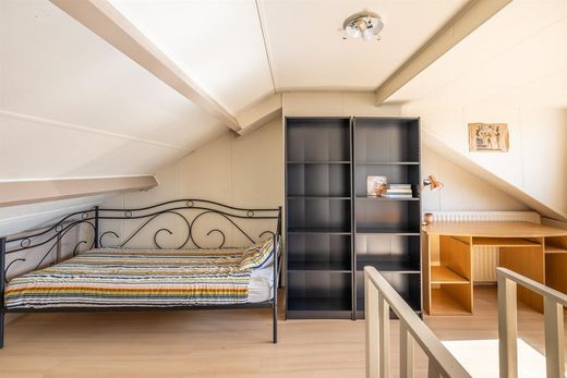 Eerste verdieping: overloop, toilet/wasruimte, grote slaapkamer met openslaande deuren naar dakterras, 2de ruime slaapkamer aan de voorzijde, badkamer met wastafelmeubel en douche.